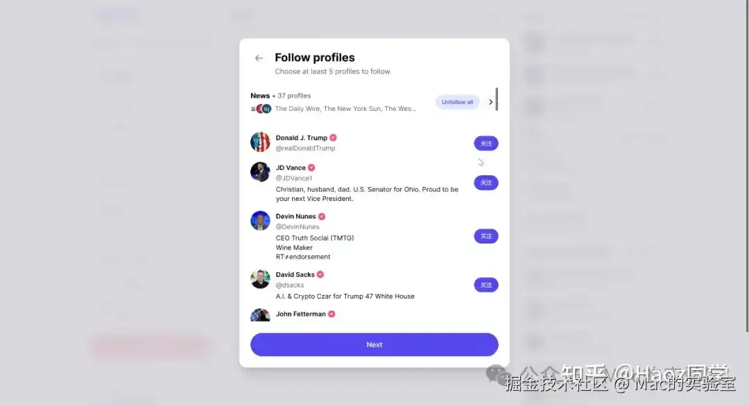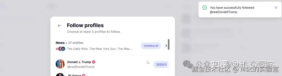 自己选follow感兴趣的即可