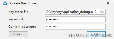 3、在Create Key Store窗口中,填写密钥库信息后,单击OK。