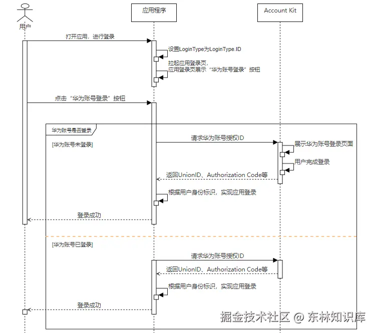 3、如华为账号已登录,将直接返回UnionID、Authorization Code、OpenID、ID Token数据给应用,应用根据获取到的用户标识,服务端进行安全认证后实现应用登录。