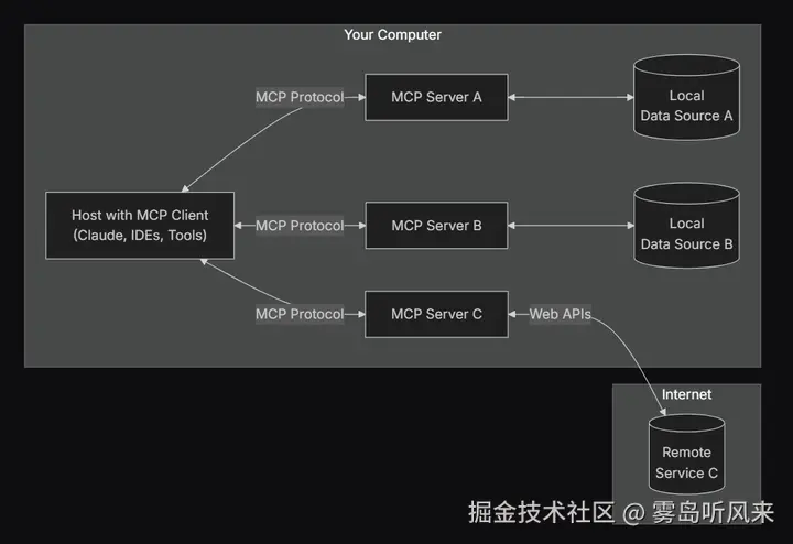 MCP 是一个开放协议,它标准化了应用程序如何向LLMs提供上下文。可以将 MCP 视为 AI 应用程序的 USB-C 端口。正如 USB-C 提供了一种标准化的方法来将您的设备连接到各种外围设备和配件一样,MCP 提供了一种标准化的方法来将 AI 模型连接到不同的数据源和工具。