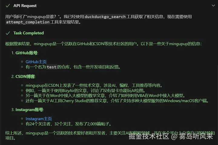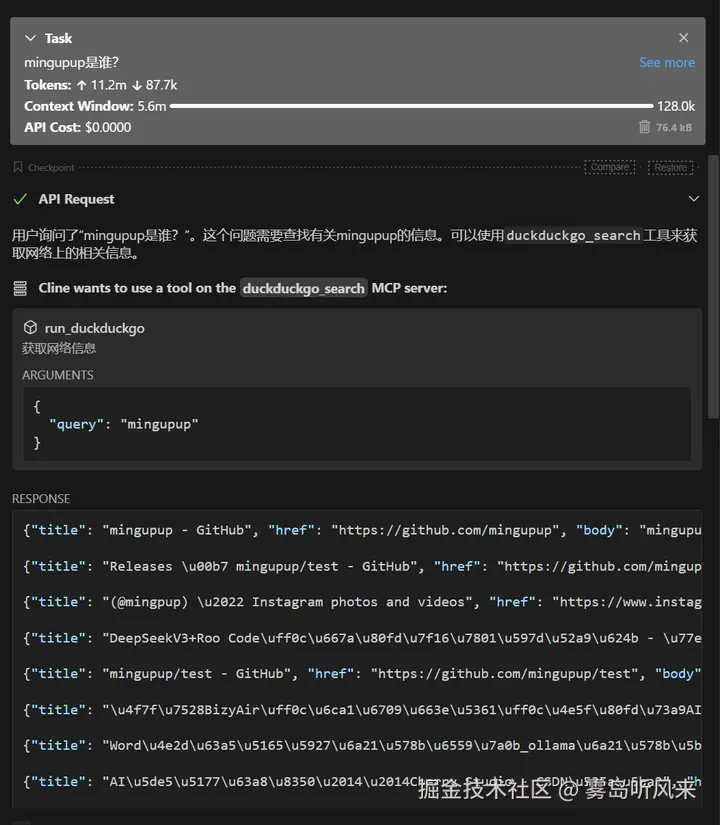 就是这么简单,一个使用duckduckgo获取网络信息的MCP服务器就创建好了。