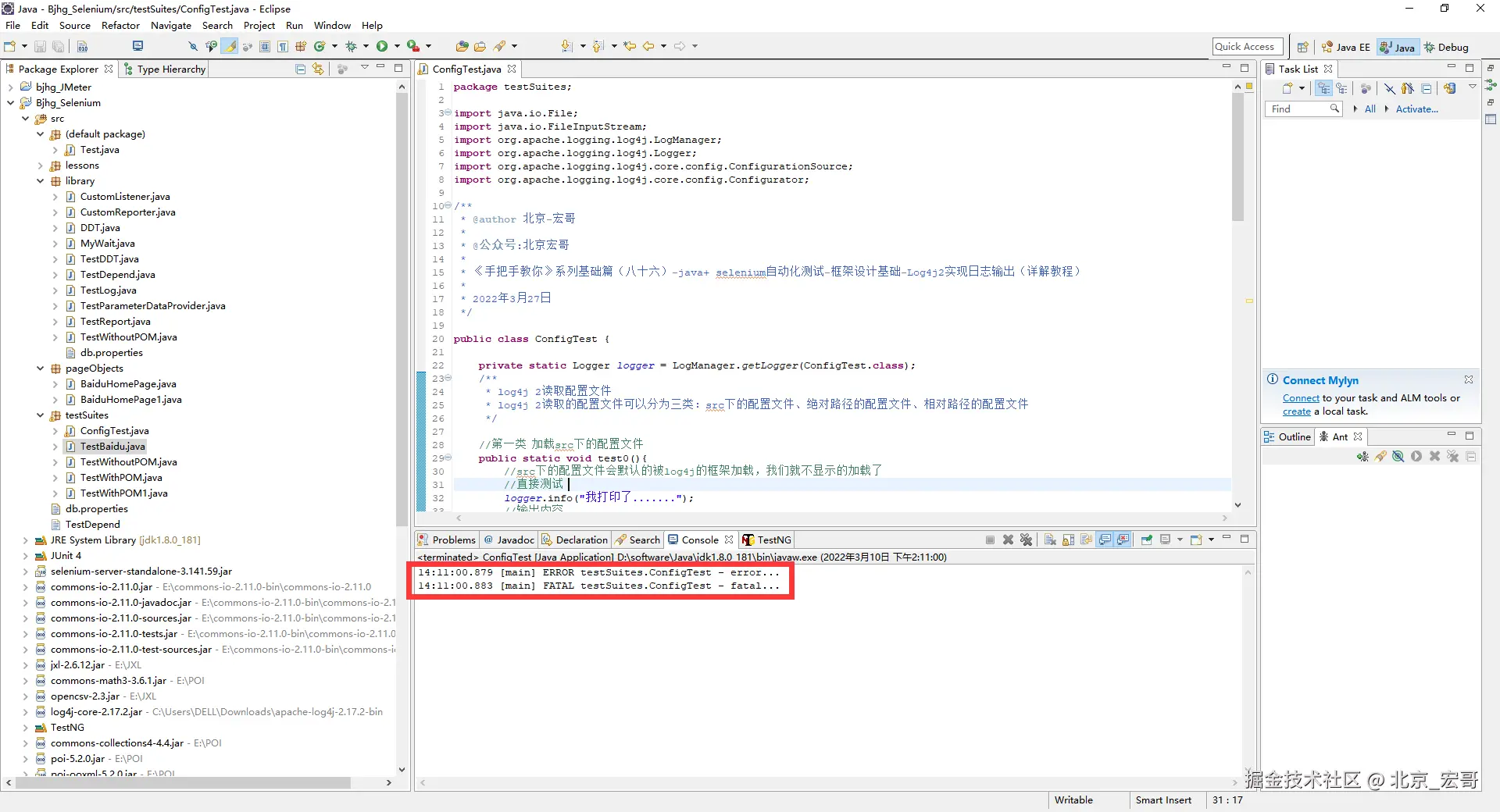 * 《手把手教你》系列基础篇(八十六)-java+ selenium自动化测试-框架设计基础-Log4j 2实现日志输出(详解教程)