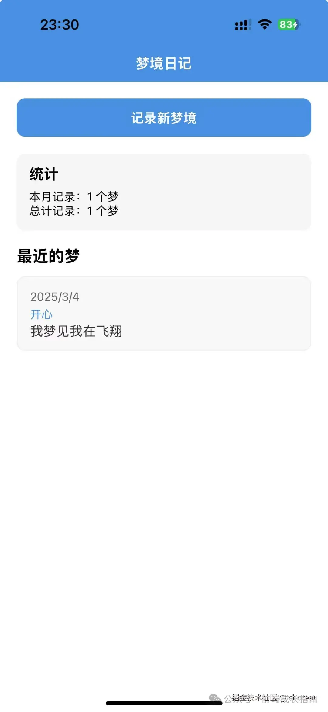 一直没有真正做过 App 开发,所以想尝试一下。作为 Web 前端,最熟悉的当然是 React 技术栈的 React Native,所以今天就使用这个。我想做的是一个记录梦的 App,暂时叫做 redream。