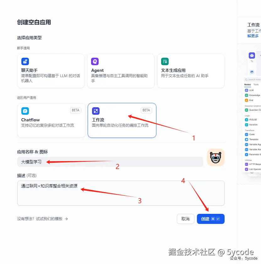 - Workflow:面向自动化和批处理情景,适合高质量翻译、数据分析、内容生成、电子邮件自动化等应用程序。