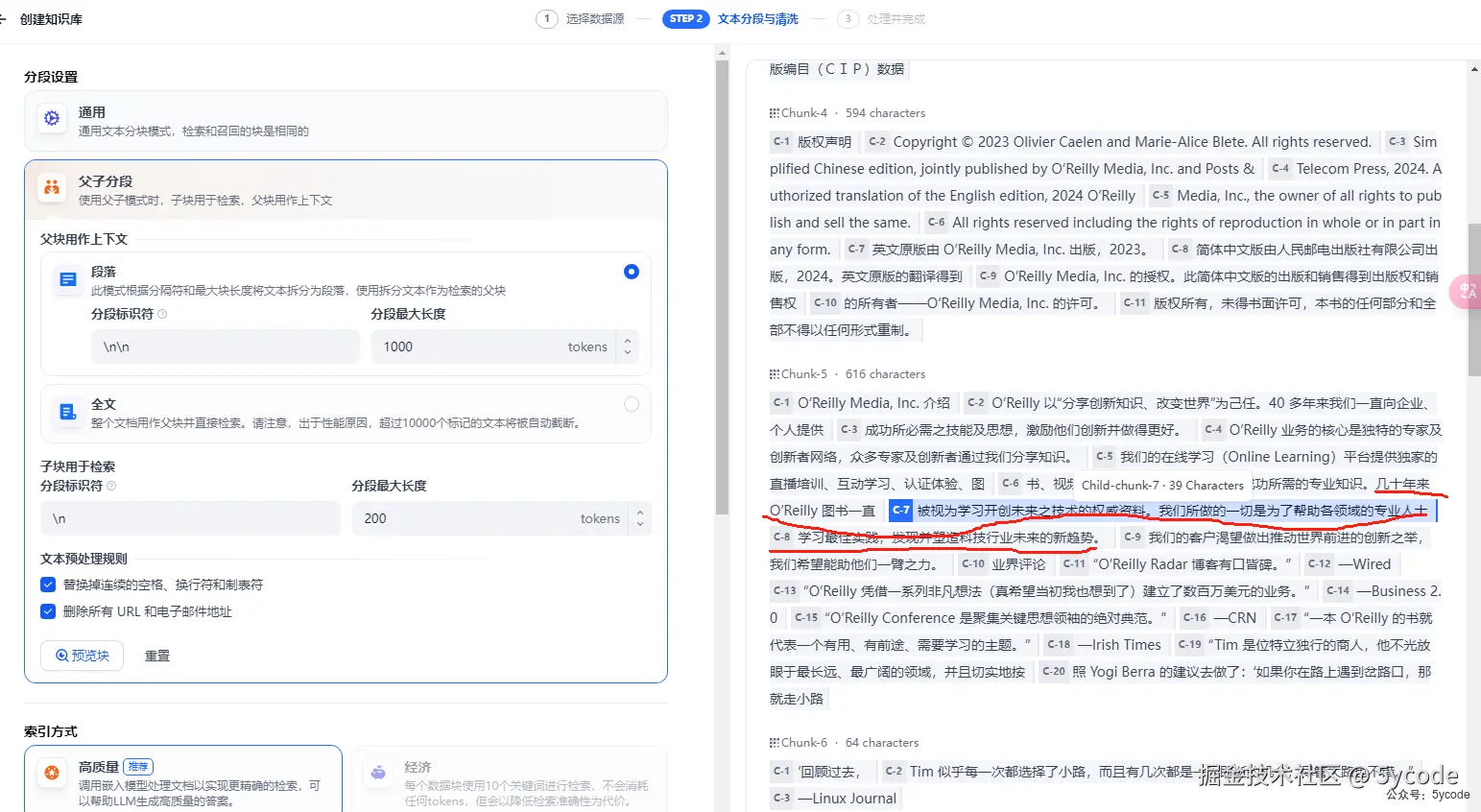 我们可以在知识库中上传企业或个人的文件资料,上传后通过设置分段格式向量化文档,