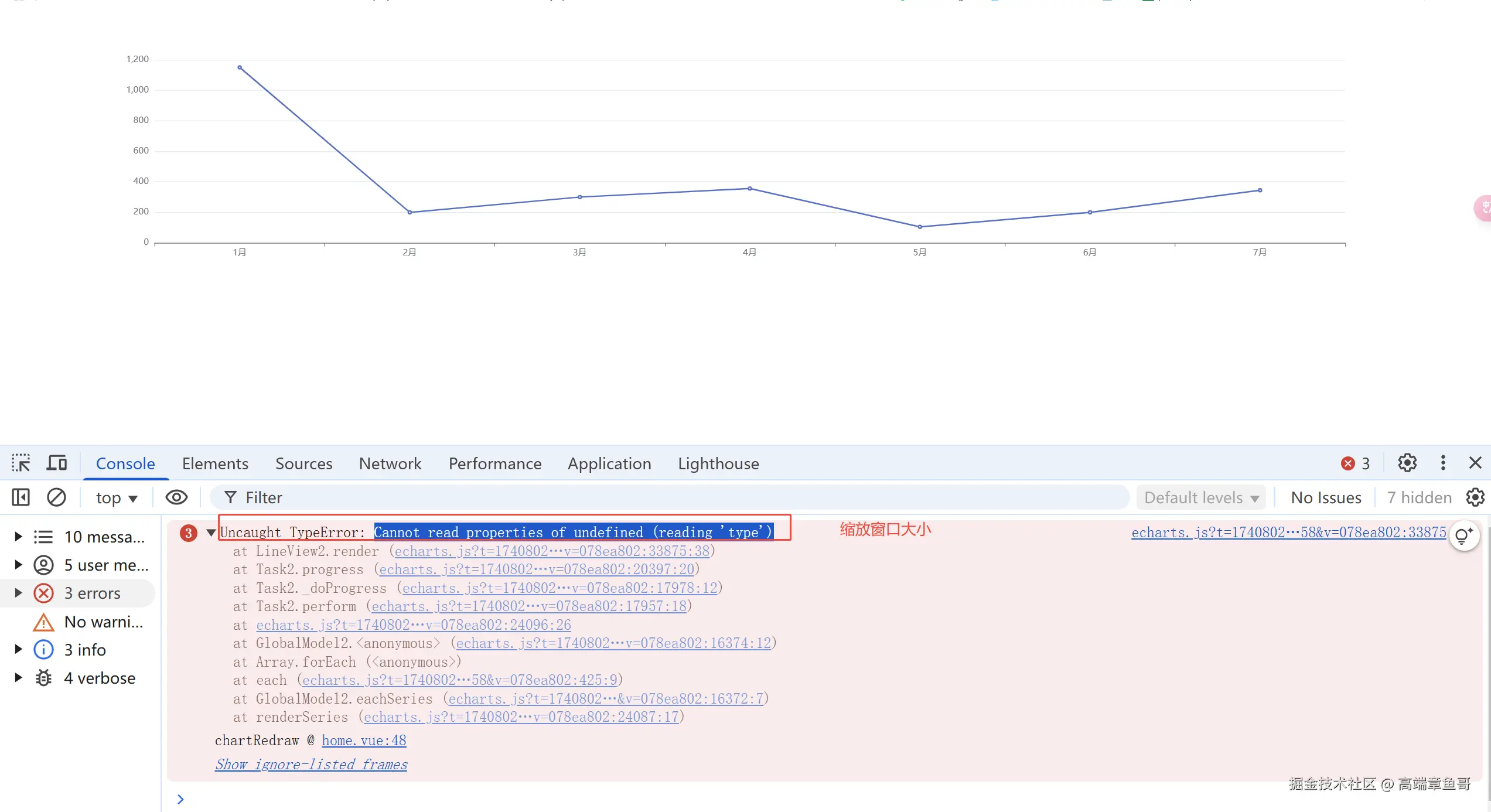 缩放窗口大小,echarts图表出现报错信息如下: