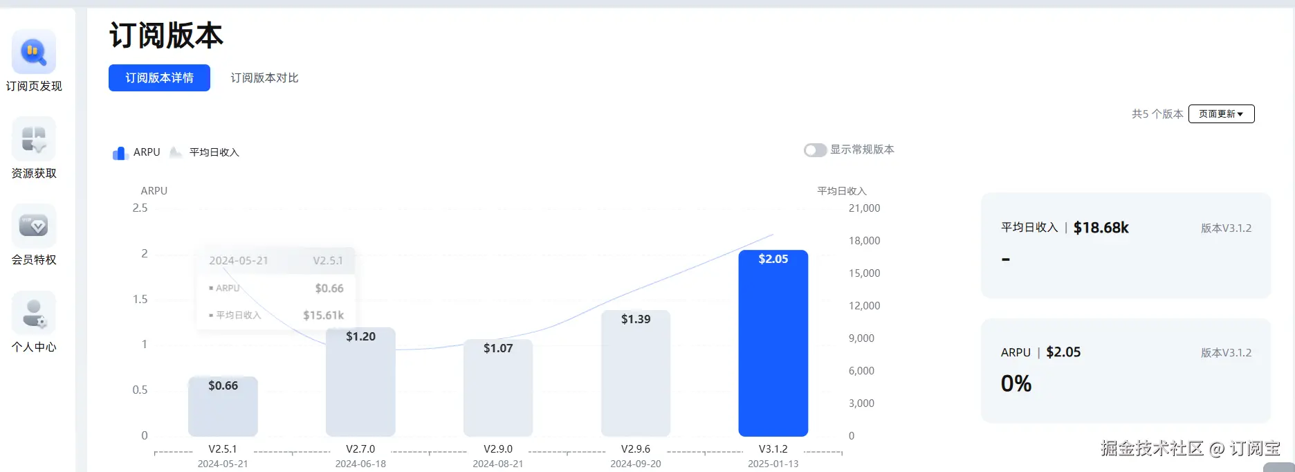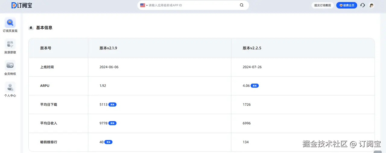 想知道竞品如何通过版本迭代提高订阅转化率?订阅宝帮你快速对比不同版本的订阅变化,找出最受用户欢迎的方案,助你优化自己的订阅产品。