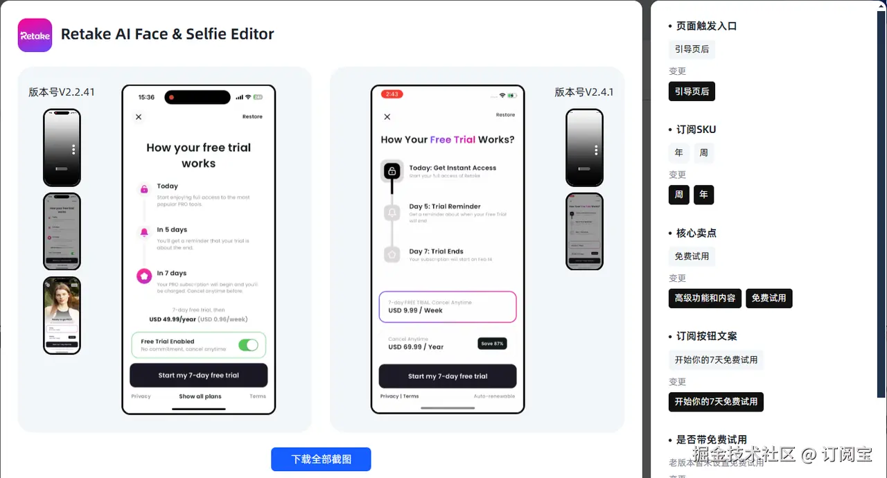 版本调整追踪:对比竞品在不同版本中的变化,找出提升转化率的关键因素。