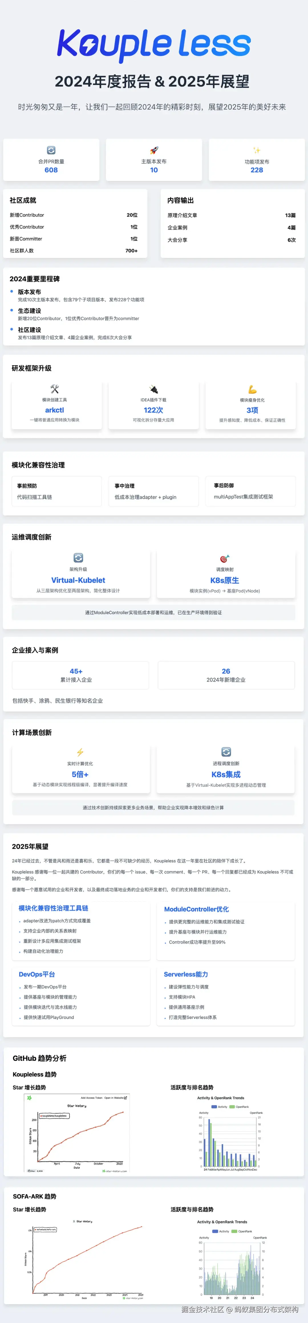 Koupleless 2024 年度报告 & 2025 规划展望(图片版 蚂蚁集团分布式架构 2025-03-05 125 阅读1分钟 Koupleless 2024 年度报告 & 2025 规划展望(图片版) 作者|梁栎鹏(立蓬)