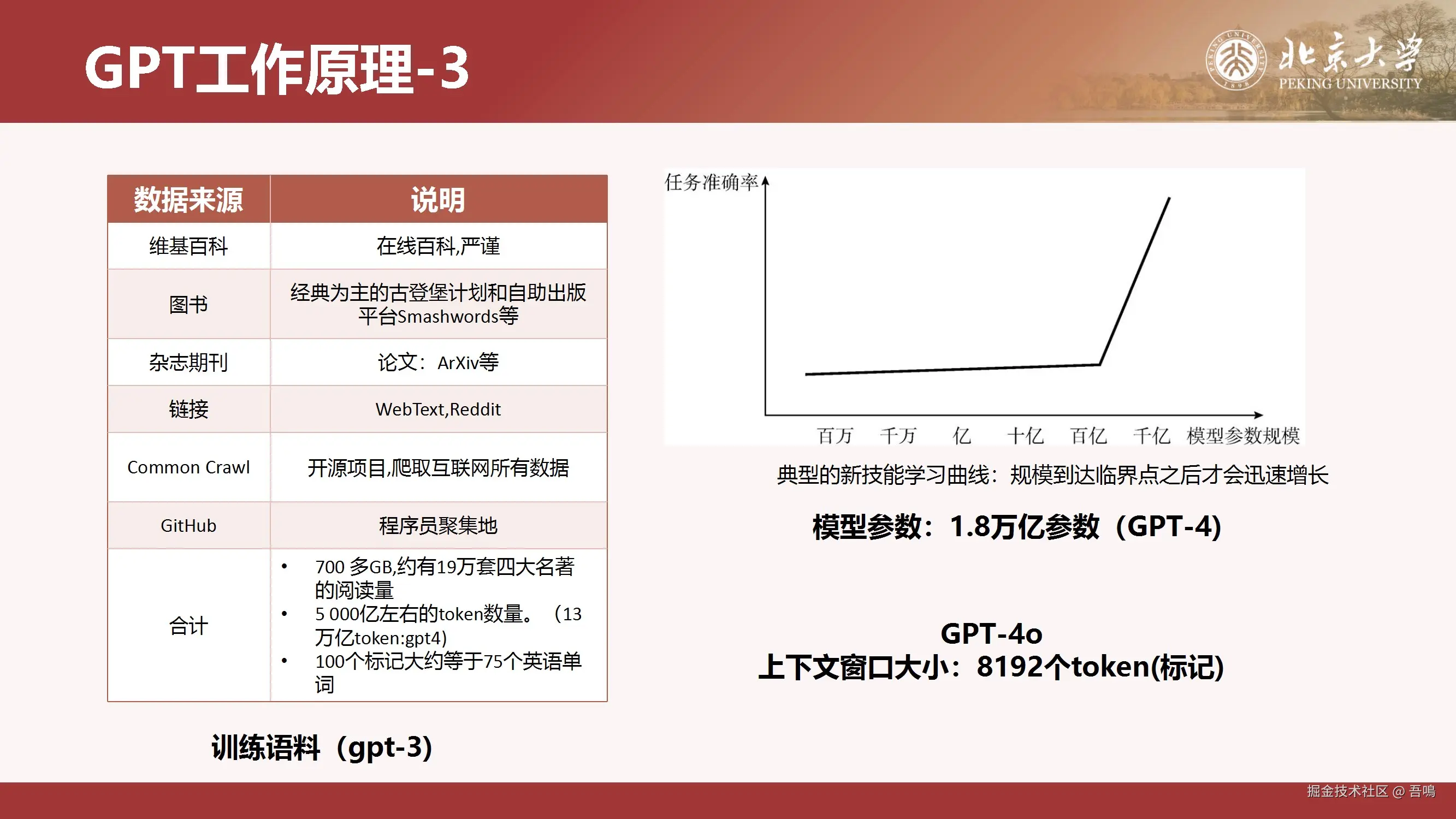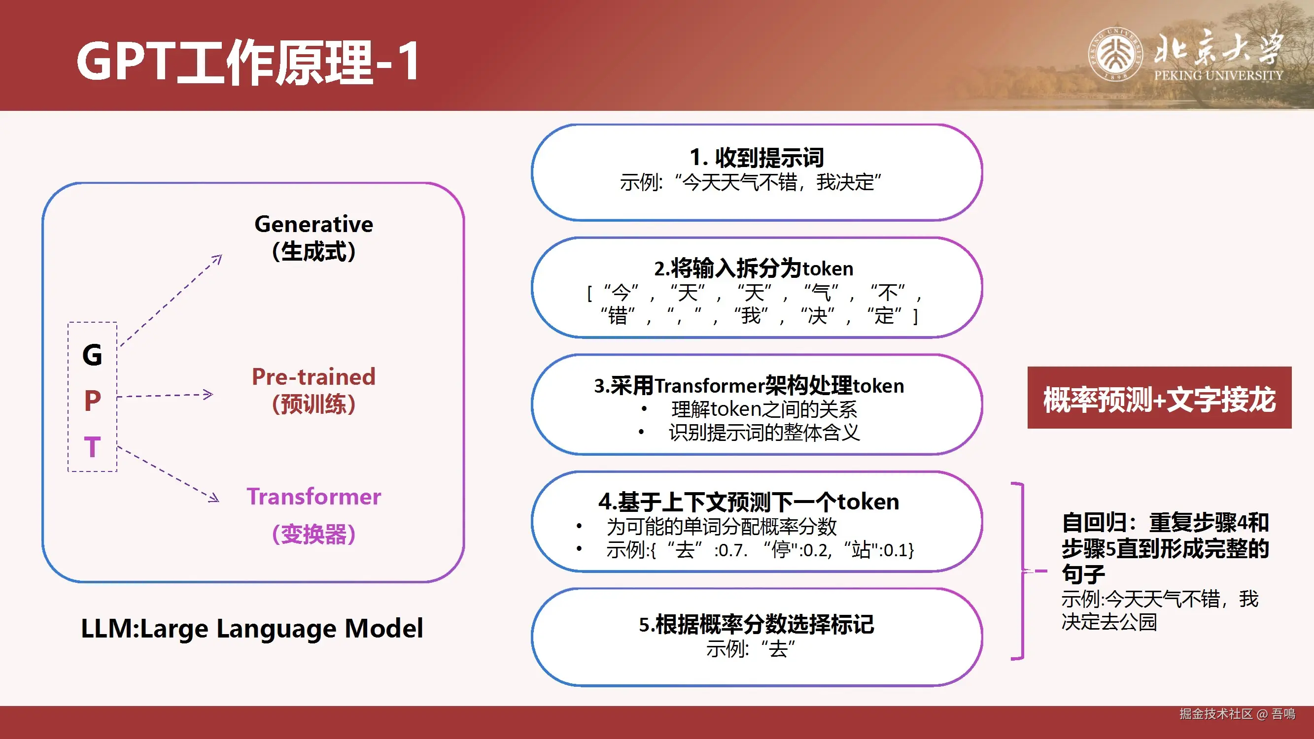 解析GPT与DeepSeek-R1的核心机制。GPT基于Transformer架构,通过预训练(海量数据如维基百科、GitHub)、自监督学习与强化学习生成文本,依赖自回归预测逐词输出,但存在幻觉与上下文限制。DeepSeek-R1作为推理模型,结合思维链(分步逻辑推理)、强化学习(自我优化)与模型蒸馏(压缩模型规模),提升复杂任务处理能力。技术突破包括混合专家(MoE)、FP8混合精度训练等,适配昇腾、英伟达等硬件,满血版需高算力支持(如NV H800集群)。