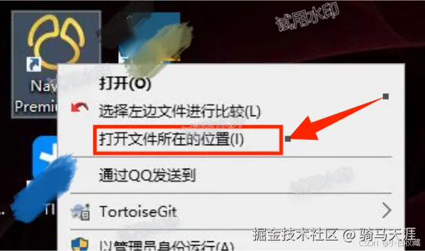 在桌面找到navicat图标,点击鼠标右键,点击“打开文件所在的位置”,即可打开navicat安装目录,将“winmm.dll”文件复制到此目录下。