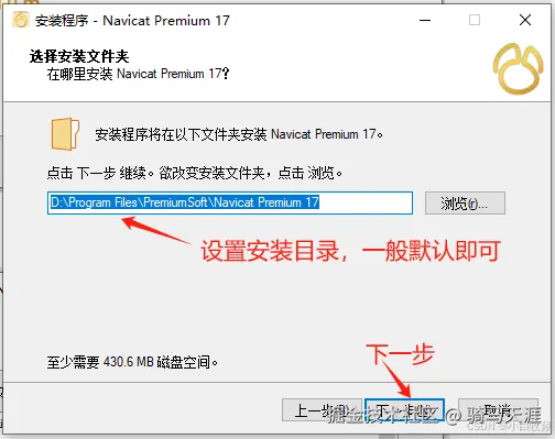 设置安装目录,一般默认即可,然后点击“下一步”