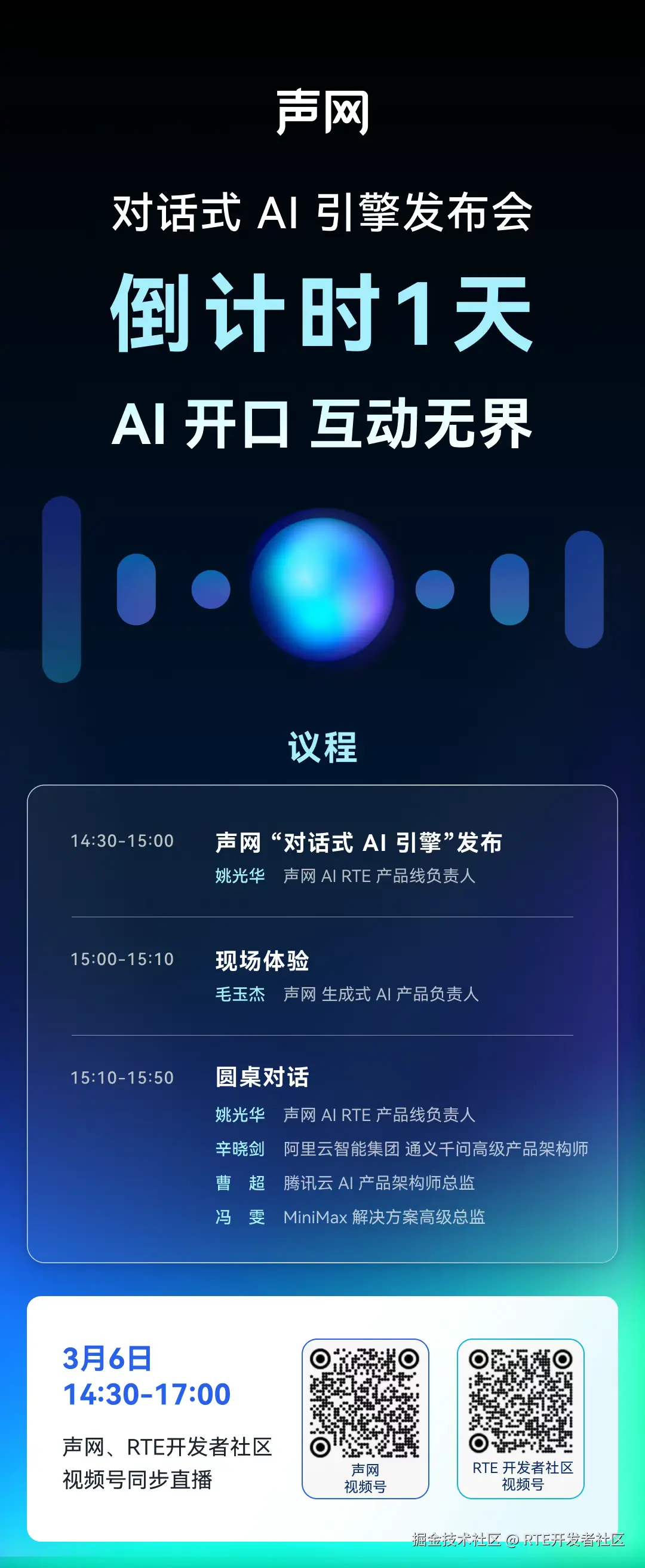 直播预约丨就在明天,声网对话式 AI 引擎发布会