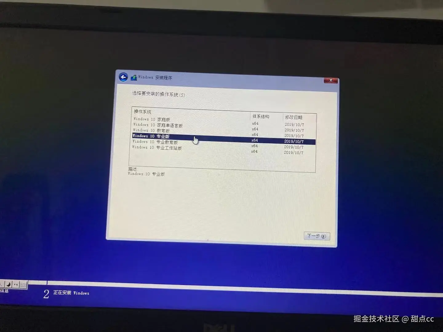 win10系统安装到刚刚分好区的系统盘C盘里面,点击下一步,等待安装