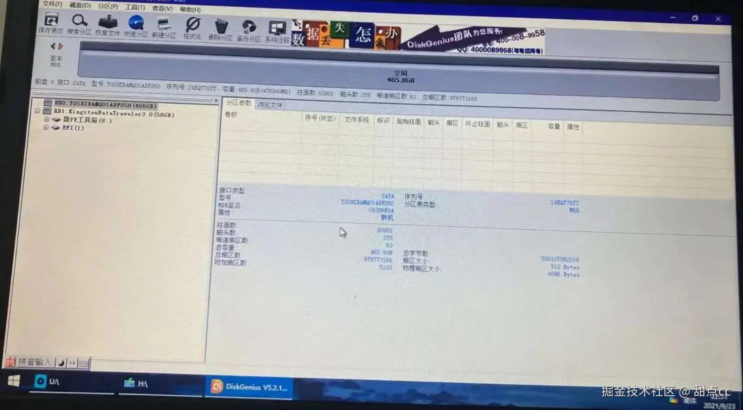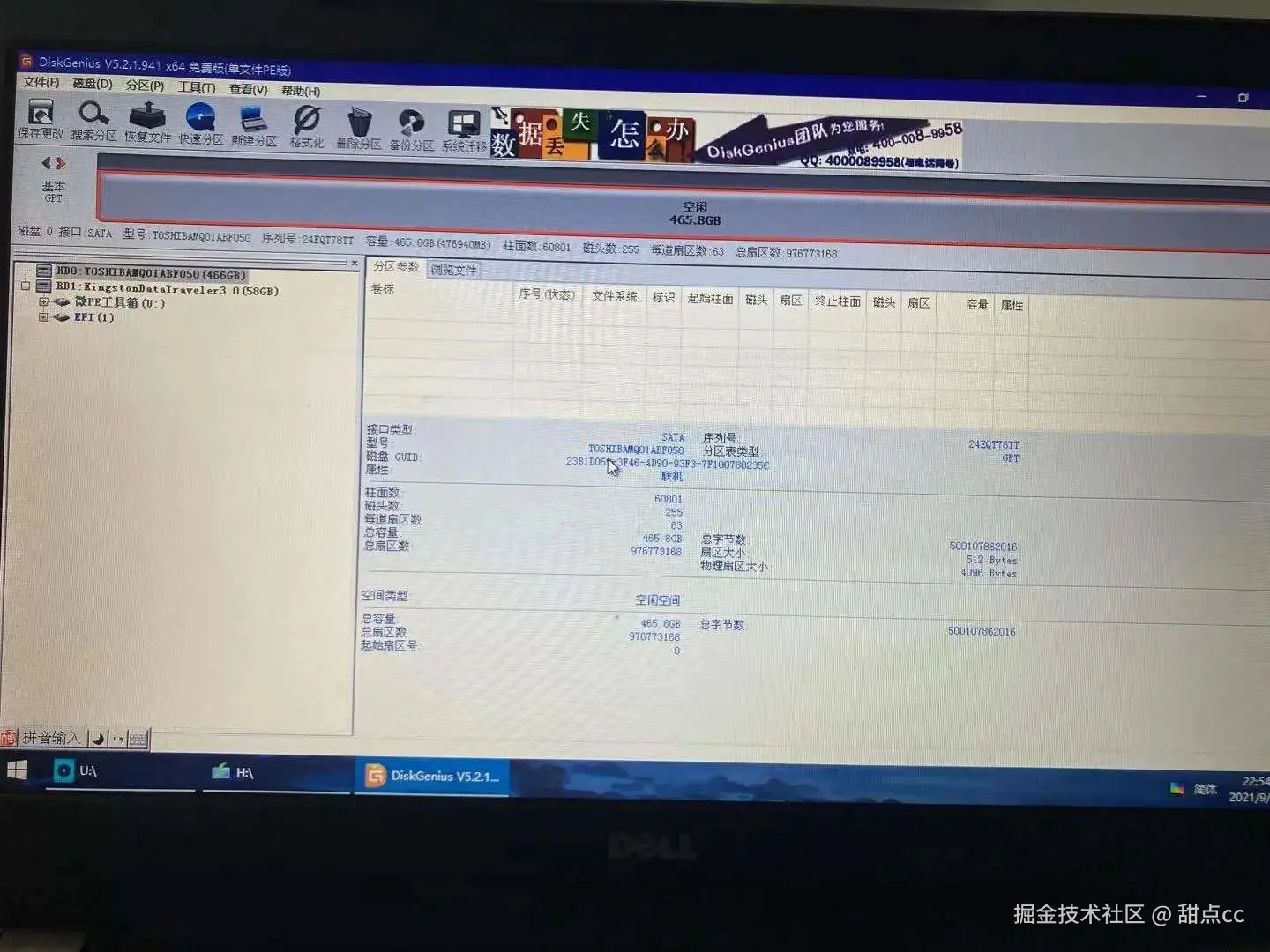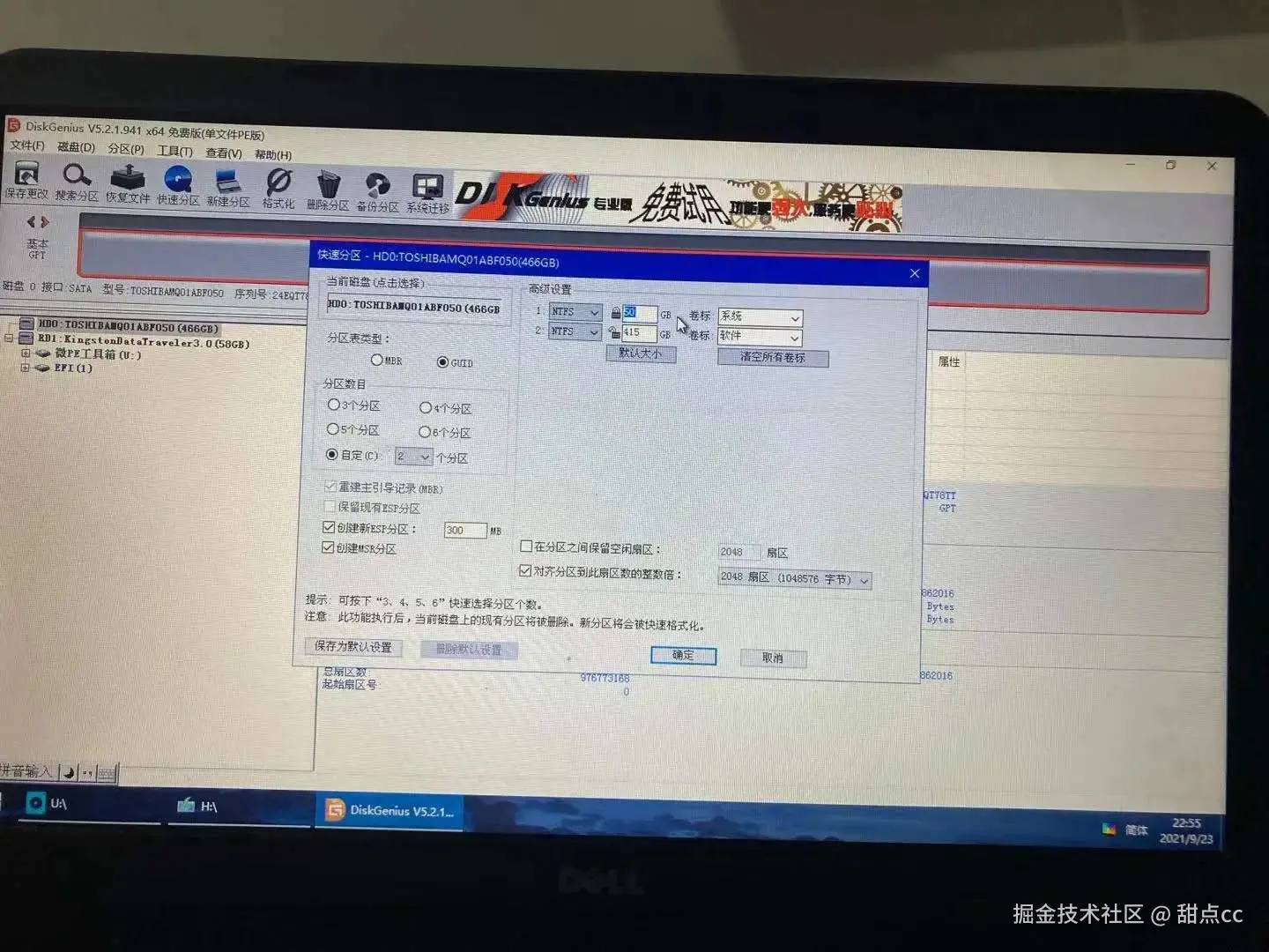 3.3、分区工具对旧电脑重新分区,并修改分区表类型