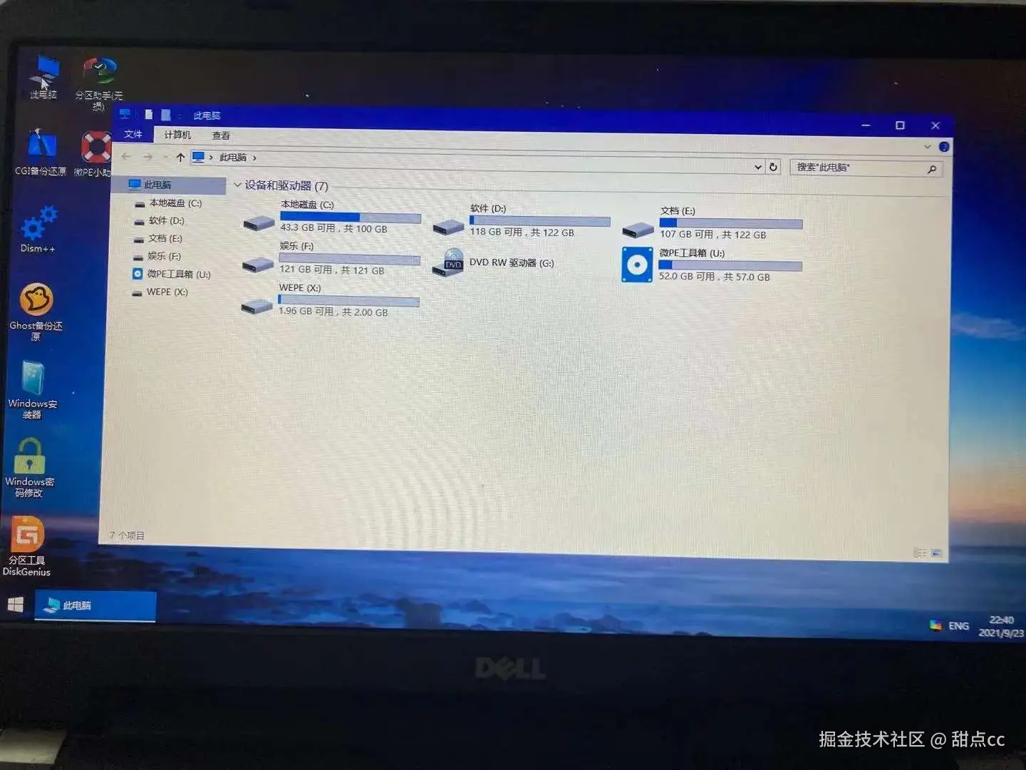 这里说明一下,我的旧电脑原先运行的win7系统,已经有分区了,在重要文件备份完成之后,我采用微PE里自带的分区工具对旧电脑进行重新分区。