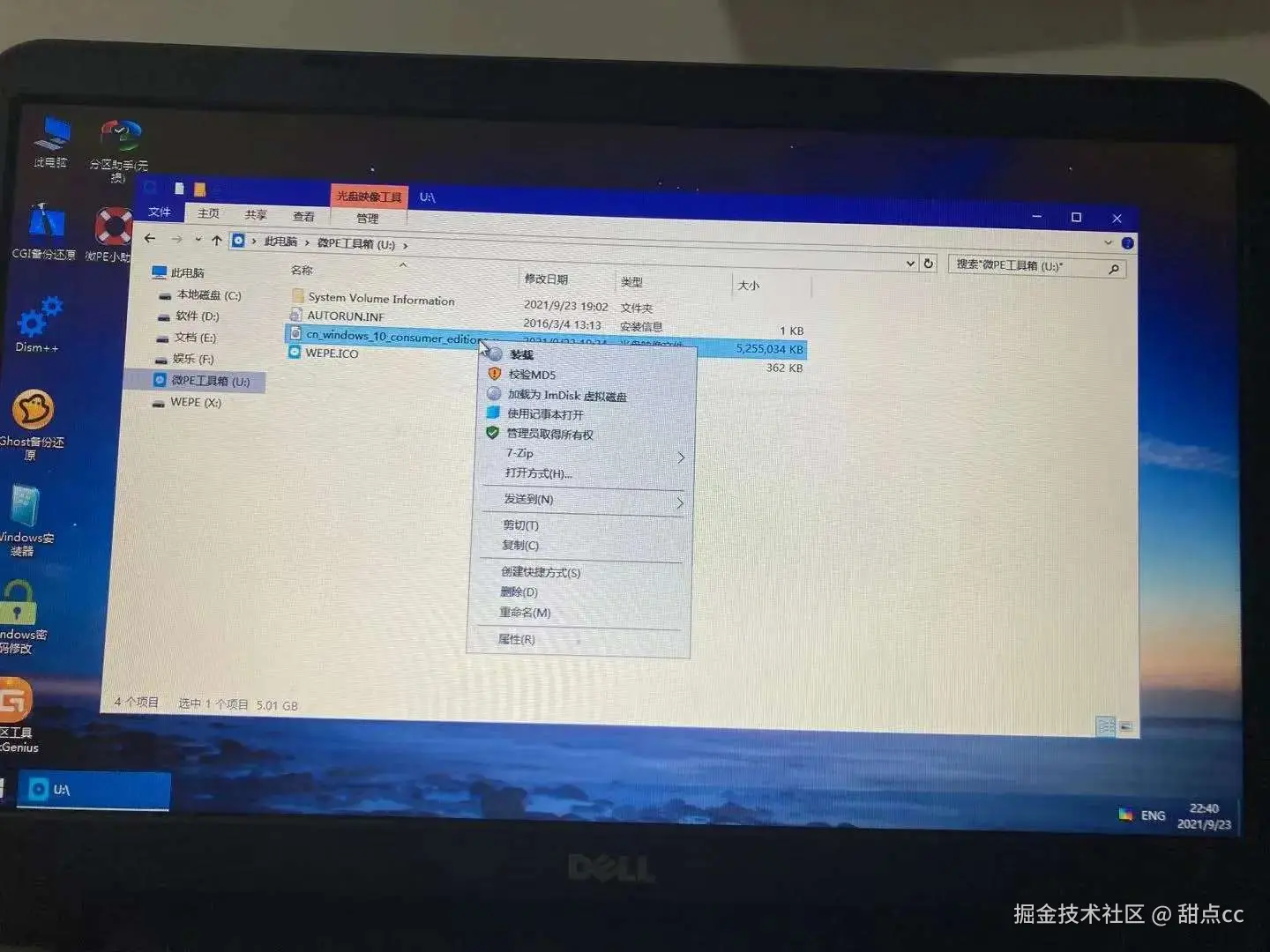 一个容量大于8G的U盘,(iso镜像文件5G)
