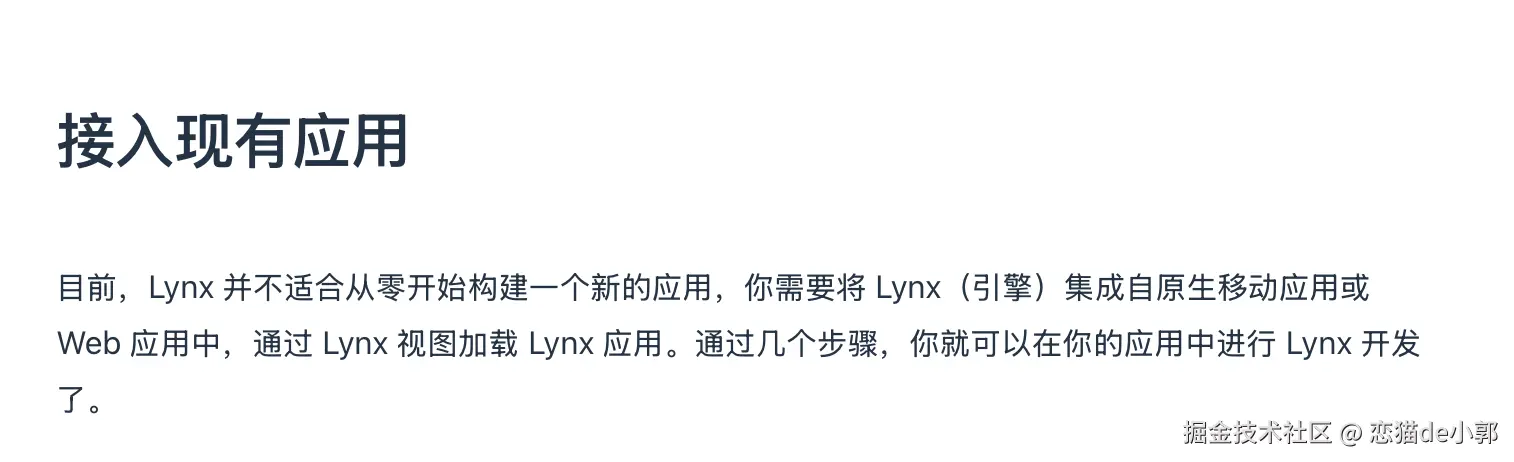 最后,从 Lynx 的实现上看,后续如果想支持更多平台其实并不复杂,而官方目前也提示了:,Lynx 并不适合从零开始构建一个新的应用,你需要将 Lynx(引擎)集成自原生移动应用或 Web 应用中,通过 Lynx 视图加载 Lynx 应用 ,所以 Lynx 应该是一个混合开发友好的框架。