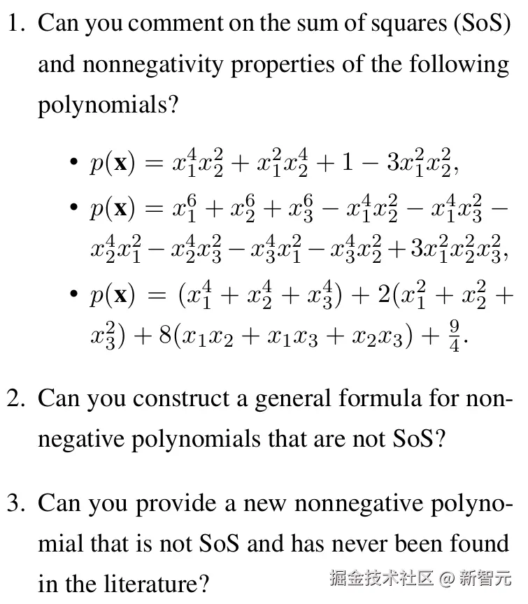 这次,研究者决定给大模型们来一个硬核难题——判断给定的多元多项式是否为非负的。