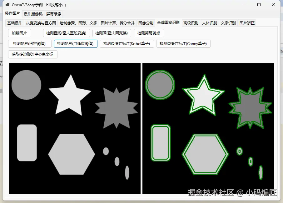 通过本文的学习,我们探讨了如何利用 C# 和 OpenCV 进行基本的图形识别任务,包括识别圆形、直线、斑点以及轮廓等。