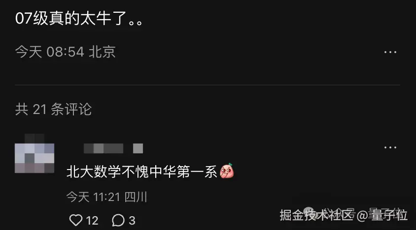 不仅如此,网友们结合之前北大校友王虹(91 年生,16 岁考入北大,07 级)破解了挂谷猜想,直呼 “北大数学系不愧中华第一系”、“07 级真的太牛了”。