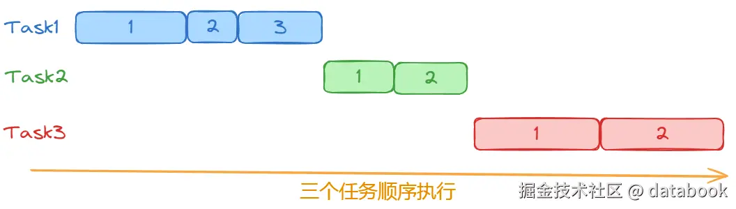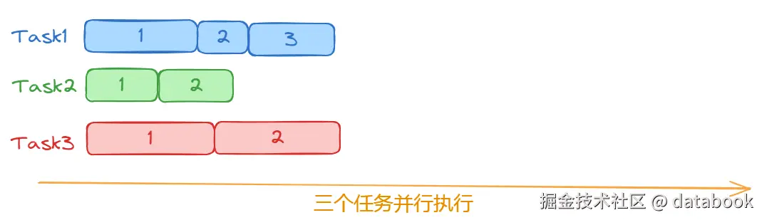 并行(parallelism)执行的情况如下,三个任务同时运行。