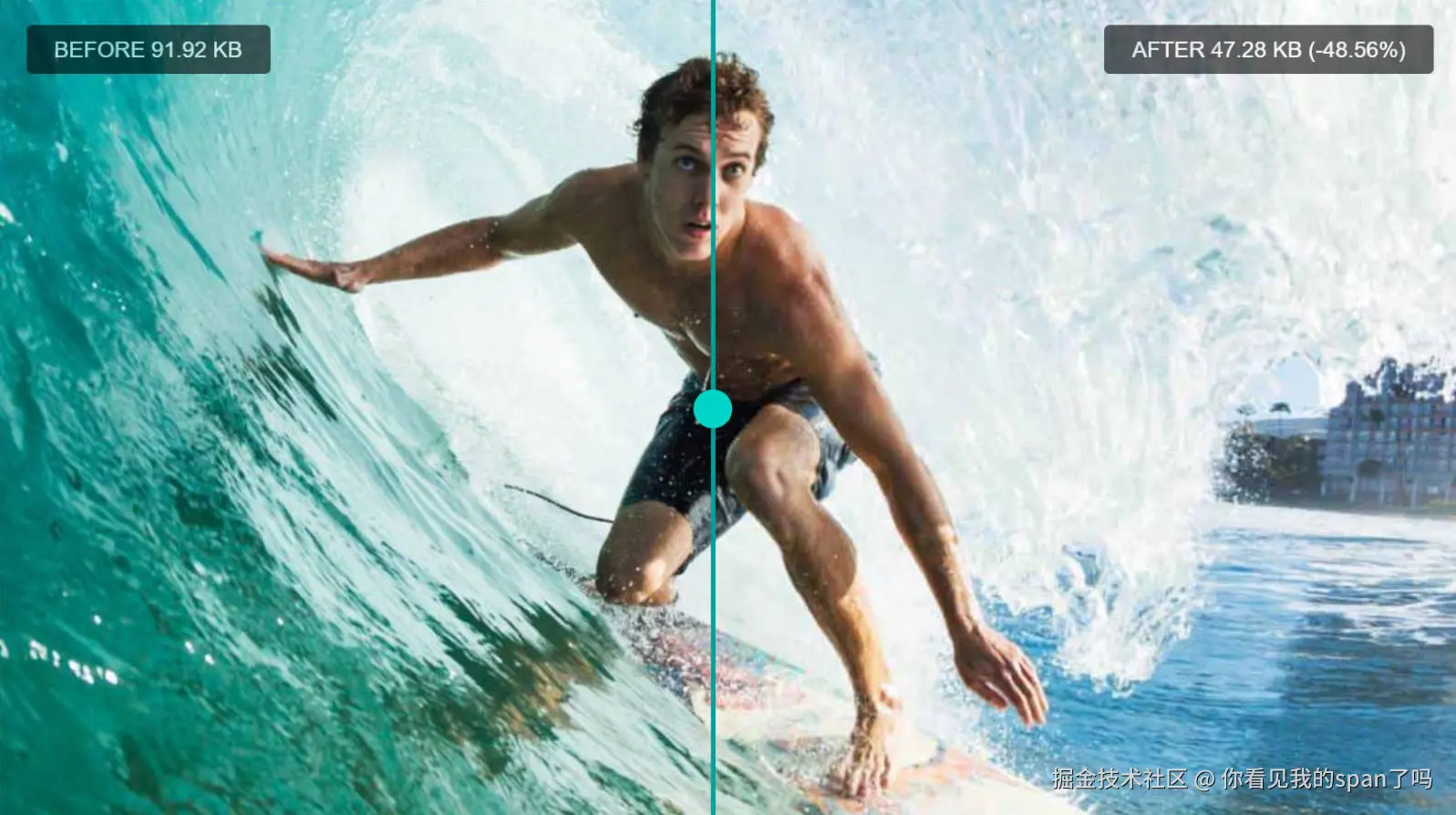 最近,公司需要开发一款在线图像压缩工具,其中的一个关键功能是让用户直观地比较压缩前后的图像效果。因此,我们设计了一个对比组件,它允许用户通过拖动滑块,动态调整两张图像的显示区域,从而清晰地看到压缩前后的差异。