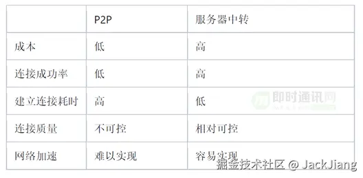 首先对P2P和服务器中转两种方案做个对比: