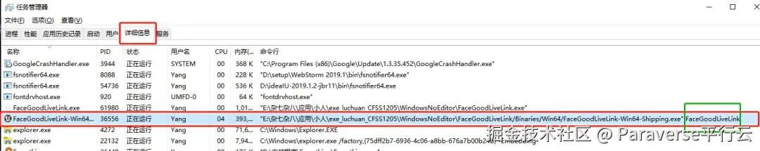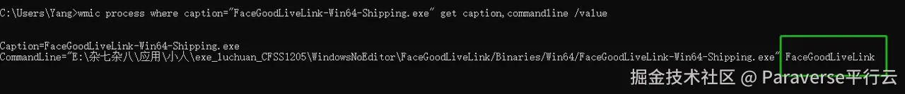 FaceGoodLiveLink-Win64-Shipping.exe” get caption,commandline /value ,查询结果中绿框内就是启动参数。