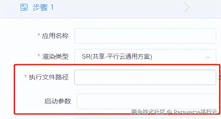 查看到应用的执行文件路径和启动参数之后,设置到下图所示的位置中。当上传zip包时,LarkXR平台会自动列出执行文件列表供选择,选择正确的路径,填写正确的启动参数。