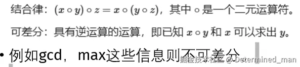 - 普通树状数组维护的信息及运算要满足 结合律 且 可差分,如加法、乘法、异或等。