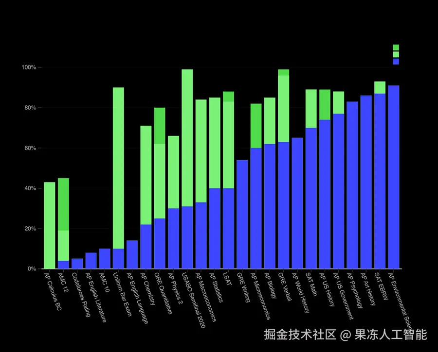 因为 GPT-4 刚发布的时候,它确实比 GPT-3.5 好太多了。谁还记得这张图: