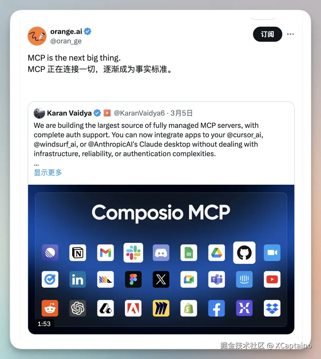 如果你最近经常刷 X 的话,你会发现一个频繁出现的关键词: MCP ****。