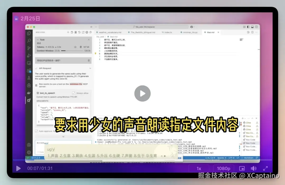 把海螺AI的API做成 MCP,一句话生成音频。