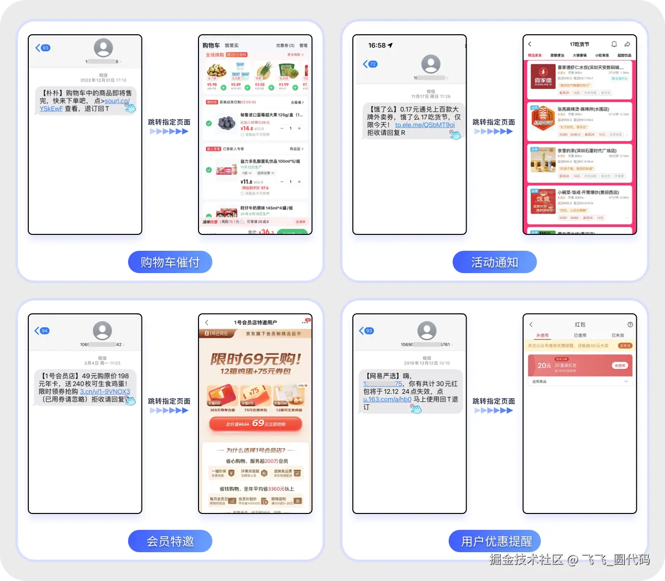 - 运营逻辑:策划限时优惠、库存提醒、会员特邀、订单催付等内容,生成含特定页面参数的深度链接,通过短信、邮件、PUSH等渠道推送;