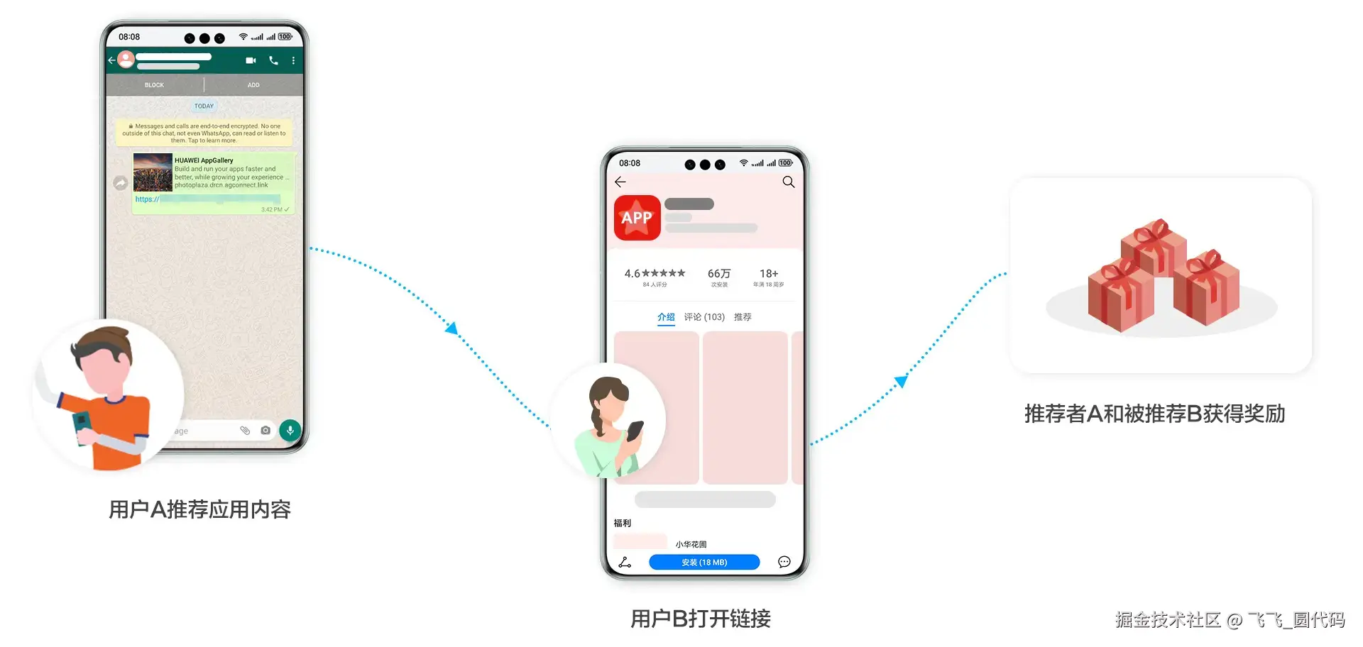 - 用户行为:用户被活动吸引点击链接→若已安装App,直接唤醒并跳转至活动页→引导完成下单、转发等行为;若未安装,下载后首次打开自动还原至活动页。