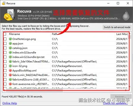 第2步:在指定位置上寻找到自己需要恢复的文件(可多选),然后点击“Recover”,最后在弹窗选择恢复文件的存放位置即可。