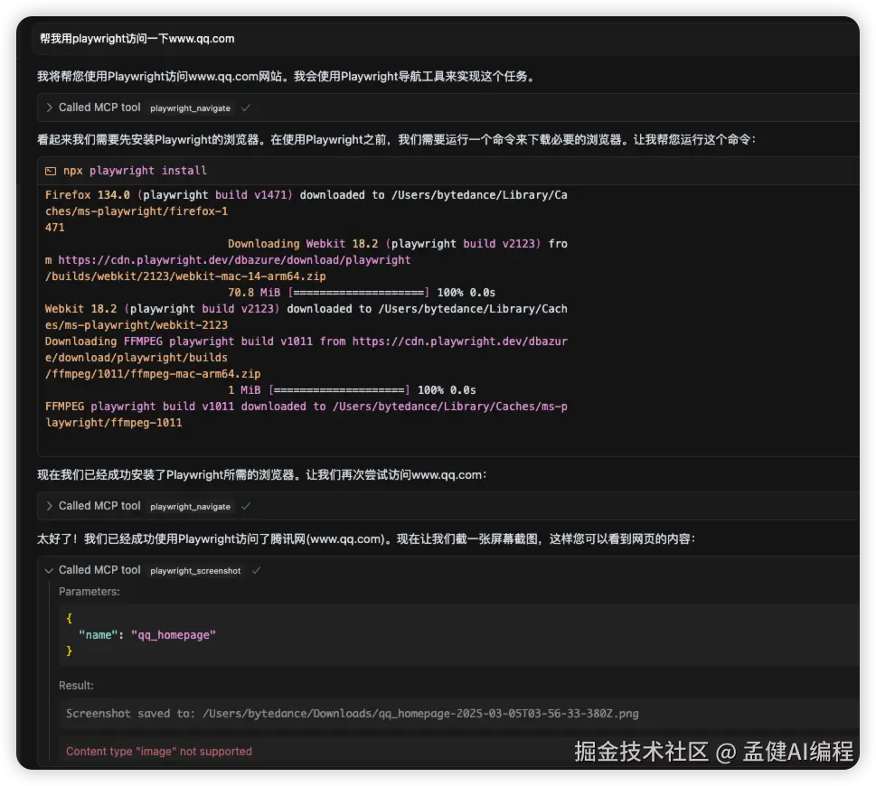比如,我让它直接访问 qq.com,他会自动访问页面,并生成一张截图: