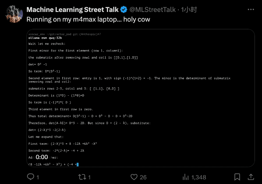 手快的网友直接就是一个本地部署在 m4max 芯片苹果笔记本上。