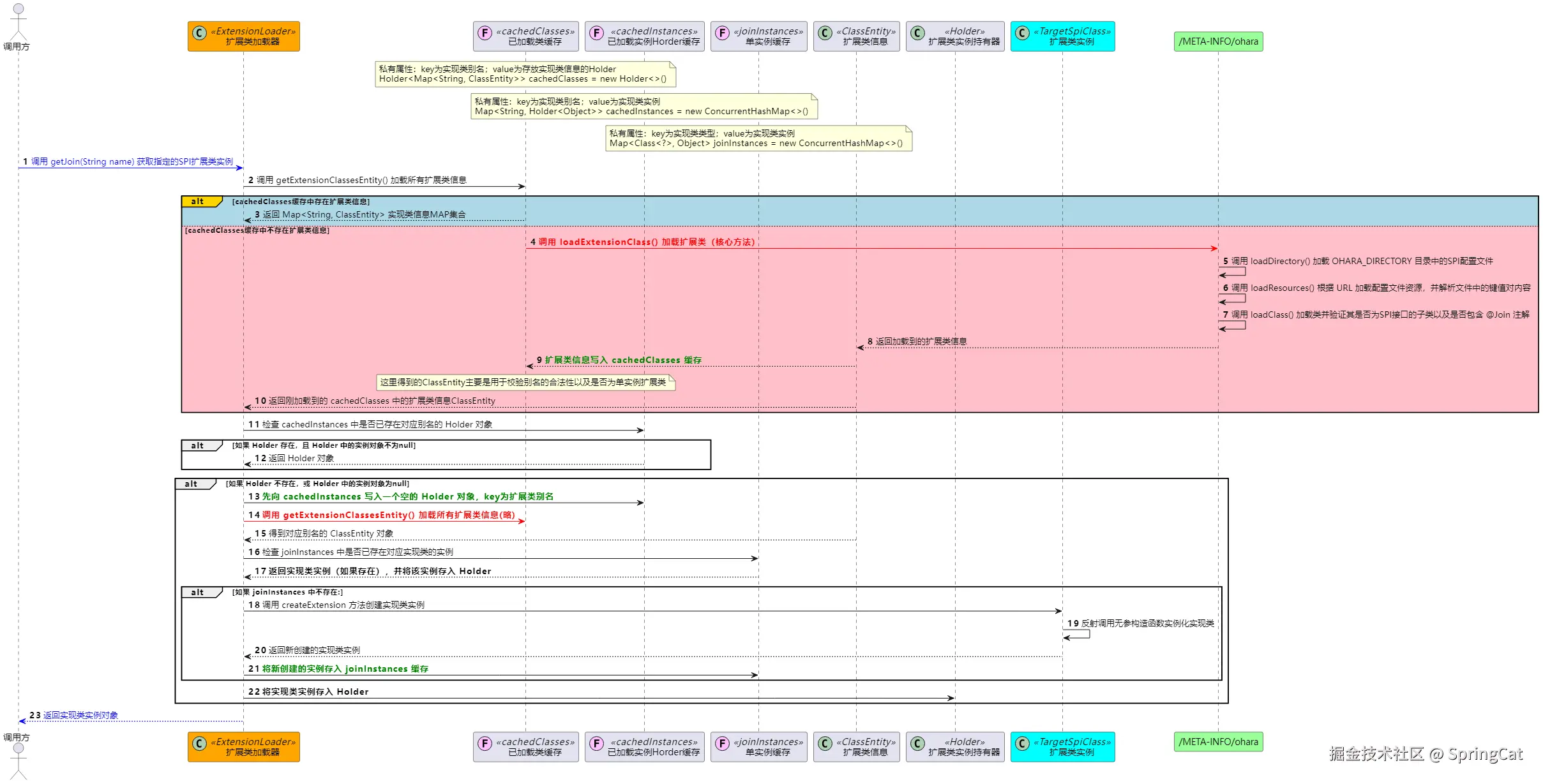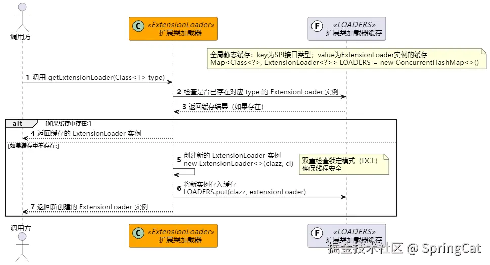 <T> ExtensionLoader<T> getExtensionLoader(final Class<T> clazz)方法:从当前 ExtensionLoader 实例中获取目标类型的 SPI 扩展类集合。public static ExtensionLoader getExtensionLoader(final Class clazz) { // 注意,这里每个 SPI 接口的类加载器都是独立的(类加载隔离) return getExtensionLoader(clazz, ExtensionLoader.class.getClassLoader()); }