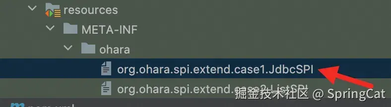 /META-INFO/ohara 目录文件下存放扩展配置文件:org.ohara.spi.extend.case1.JdbcSPI