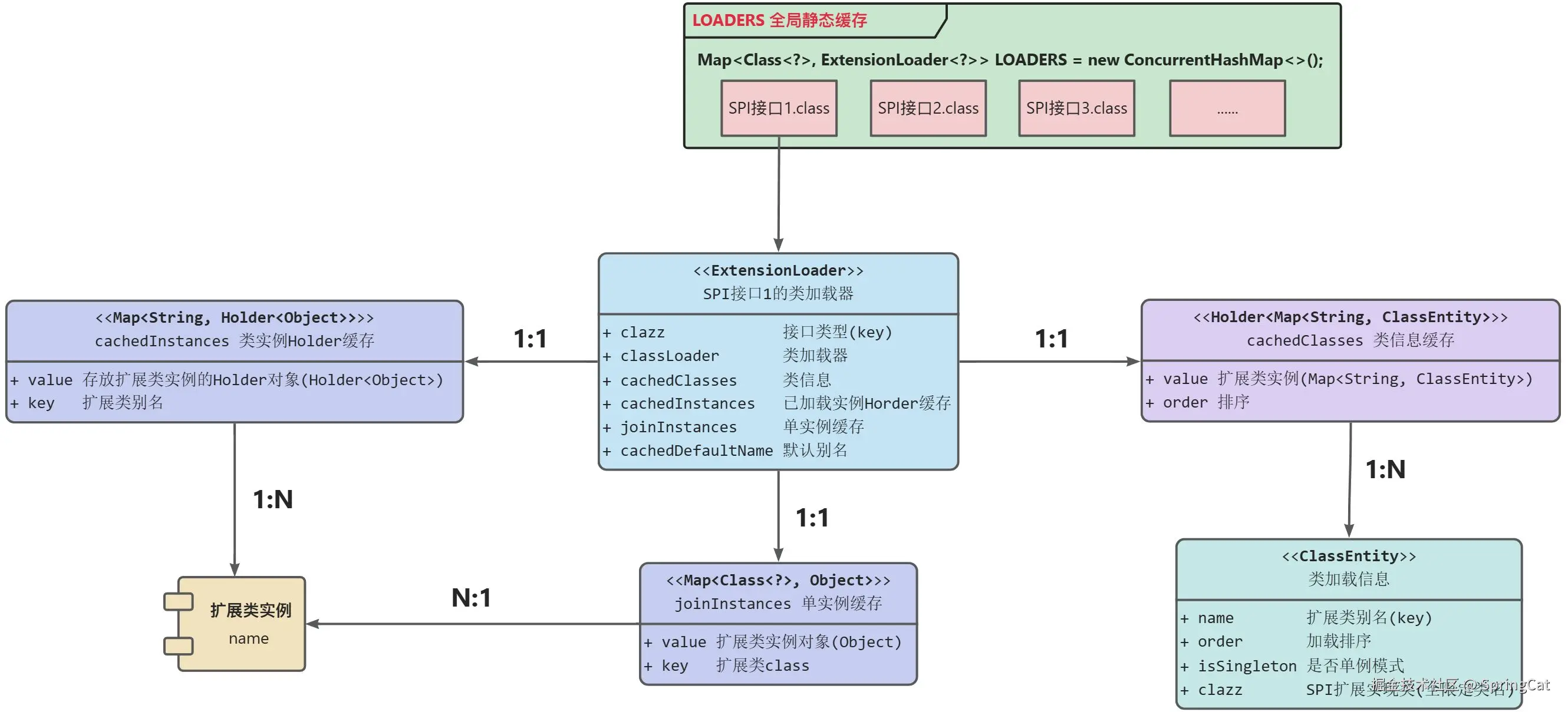 cachedClasses(成员属性):已加载类缓存,缓存了所有已加载的实现类信息。