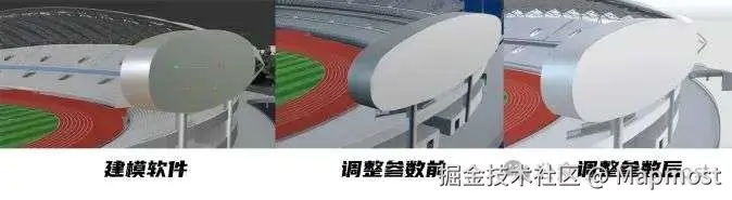 从模型渲染的结果上看,场景的问题在于光线太暗,感觉缺少“光感”。分析发现主要是渲染环境里灯光不够,也缺少环境贴图。于是,我们基于Mapmost SDK for WebGL调整了灯光设置、配置了环境贴图、优化了曝光参数,场景的明暗效果产生明显变化,环境与模型融合更自然。