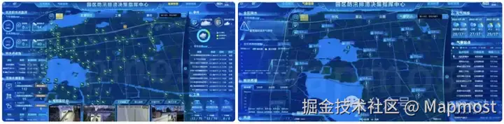 Mapmpst SDK for WebGL安全管控项目在智慧城市与水利水务相关项目中通过监控图标快速了解区域内监控分布图,通过交互可查看各个点位的监控情况;通过水位图标和属性信息快速掌握区域内各个点位水位情况,实时监测各个点位的水位,及时疏导水位危险区域的人员,避免悲剧的发生。