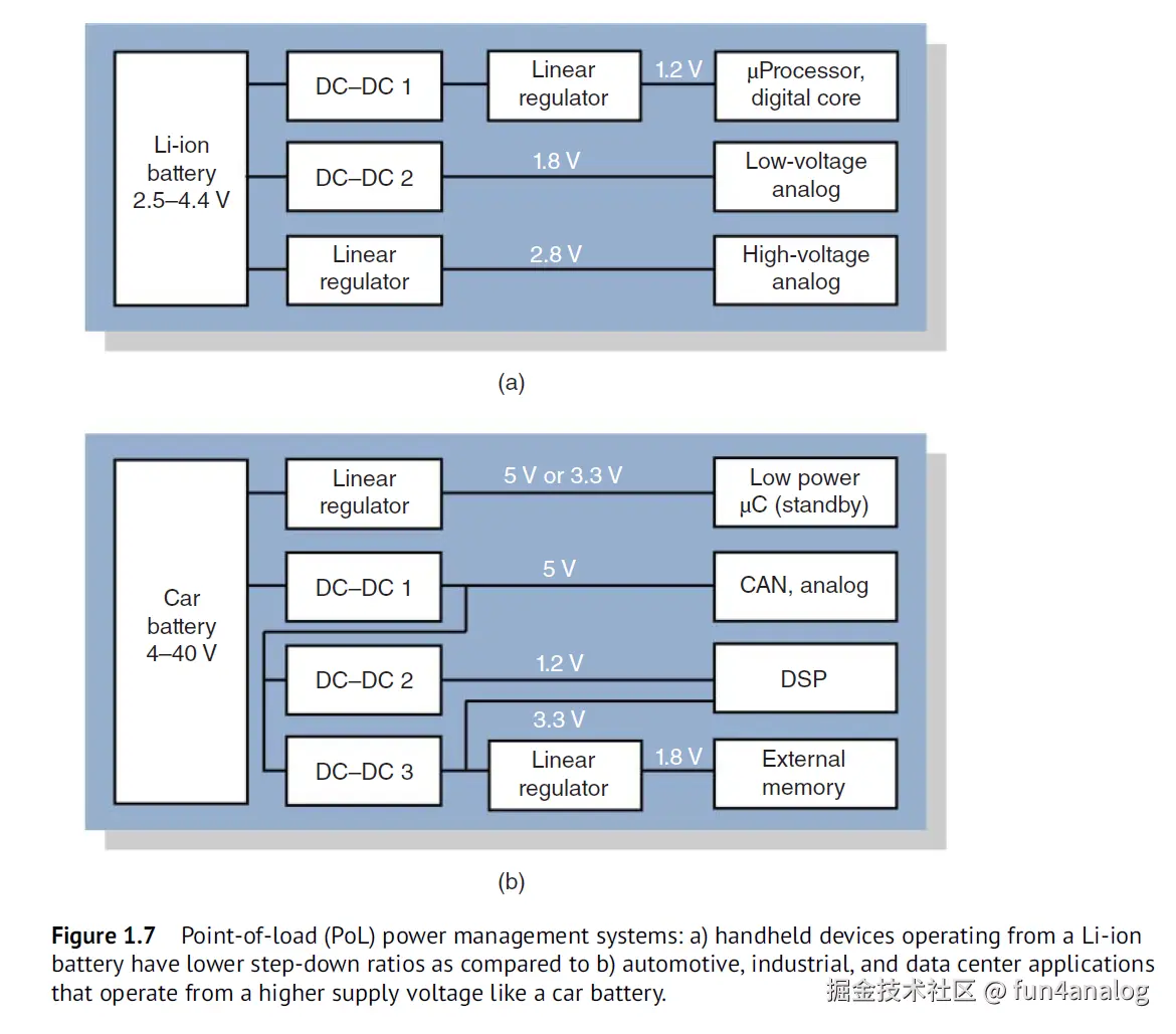 手机汽车多电源供电. DCDC, LDO级联. 注意效率为相乘, 𝜂 = 𝜂1 ⋅ 𝜂2