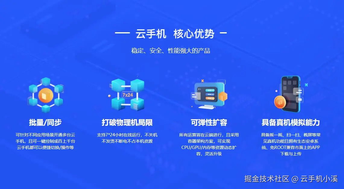 优先选择支持Root和自定义镜像的云手机平台(如河马云),并在模块开发时兼容多安卓版本。 - 性能优化: