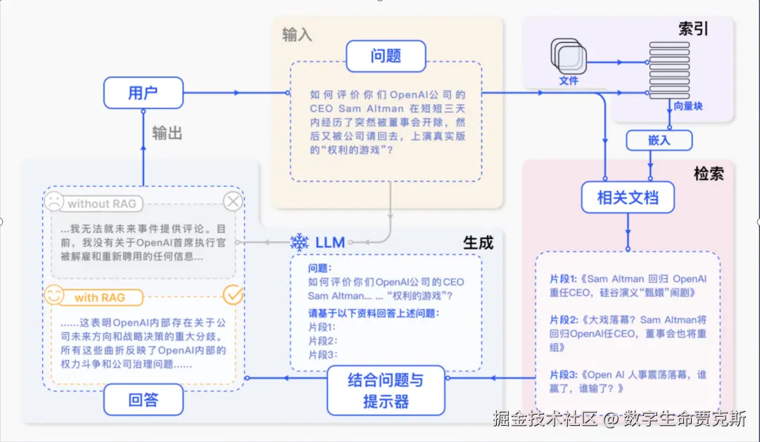 既然模型本身不知道 2025 年的知识,那么在问它一个 2025 年的内容时,先去数据库中查找 2025 年的相关知识,然后作为模型的输入一并提供给模型不就好了吗。