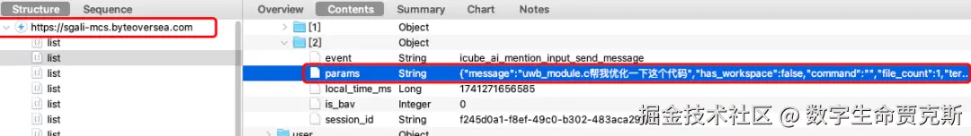 首先我们可以看到该请求是直接先发送到了 Trae 自己的服务器,然后我们把对应的请求内容 json 格式化看一下: