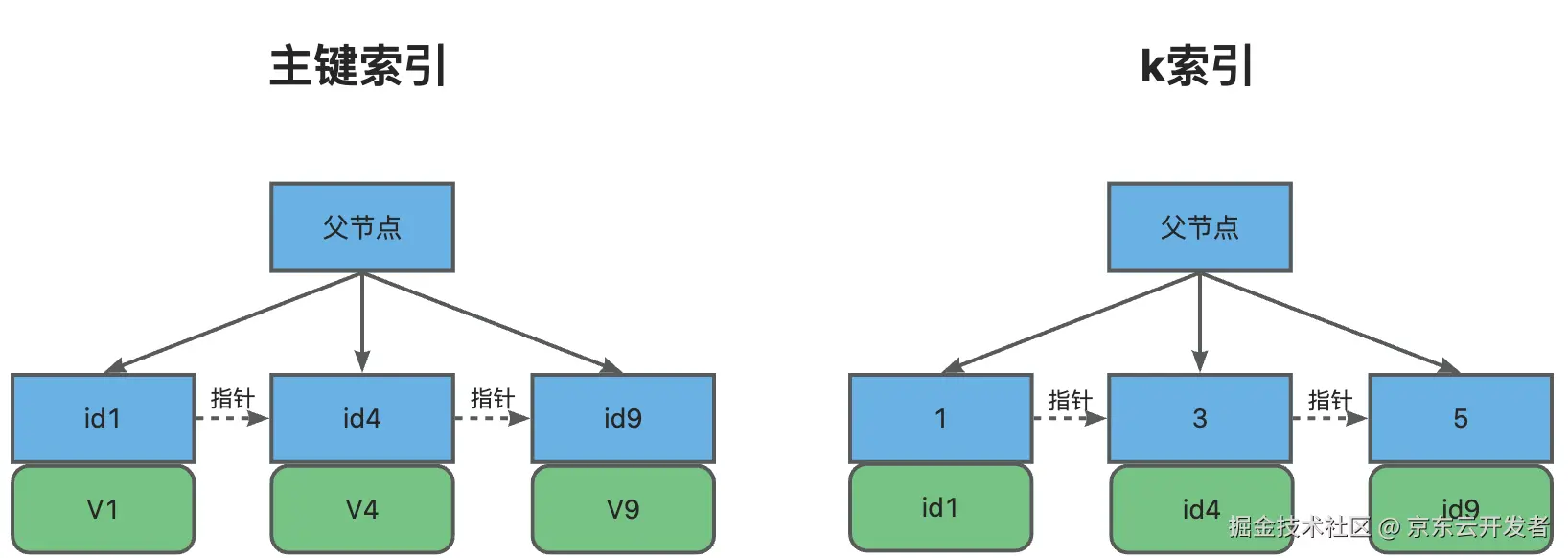 假定主键索引和k索引树分别是: