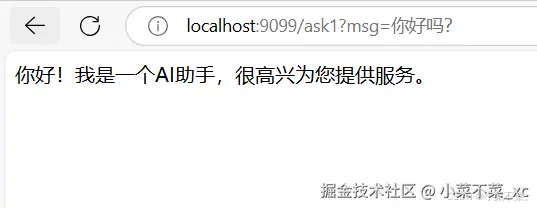 启动项目,在浏览器的url路径中输入对应信息进行测试,这样一个简单的springboot对接deepseek项目就完成了!